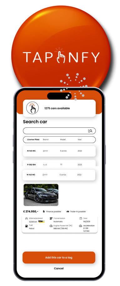 Klanten kunnen gemakkelijk voertuiggegevens via NFC-scan op hun telefoon meenemen, wat een blijvende indruk achterlaat.